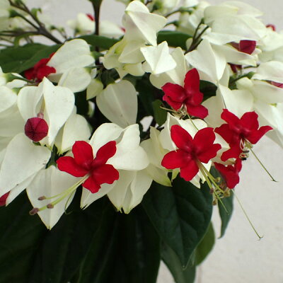 源平カズラ(ゲンペイカズラ)は、アフリカ原産のつる性の常緑低木で、春から初夏に、コントラストが鮮やかな白と赤の花がたくさん咲きます。